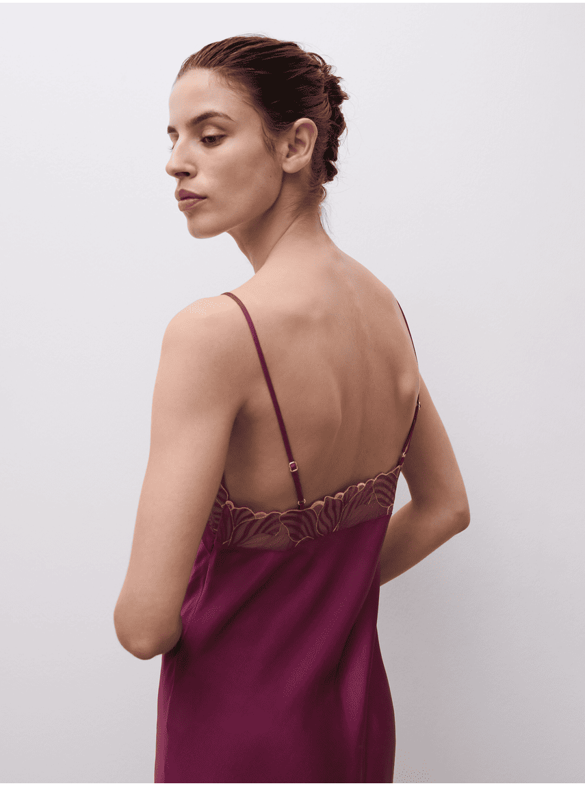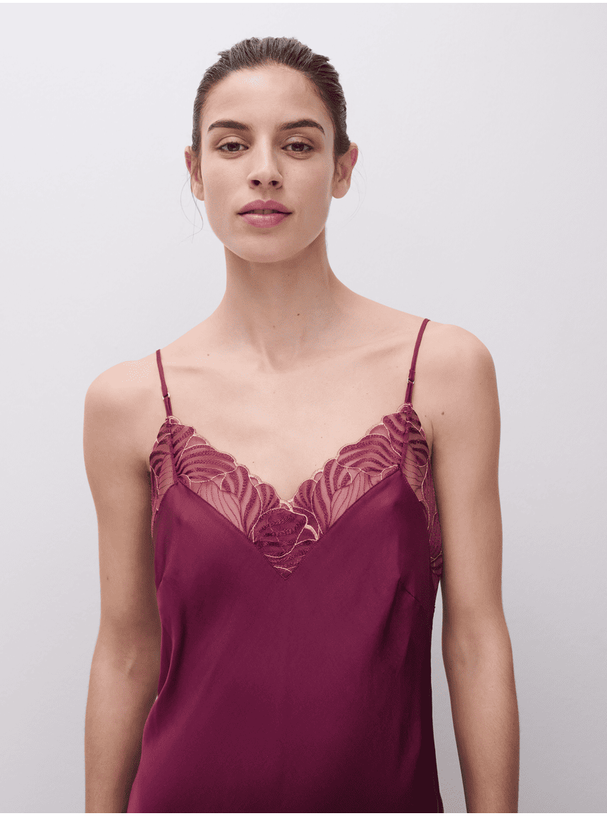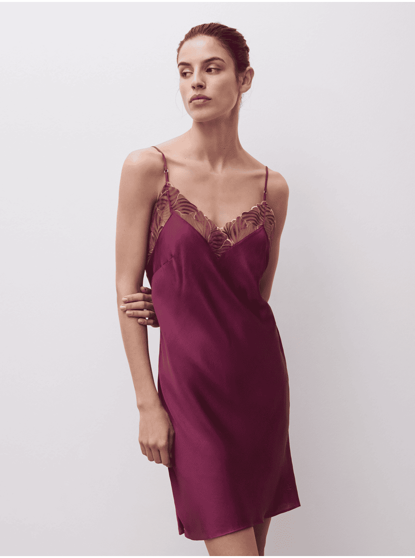 Legend – elegantiški naktinukai iš „Chantelle“, pasižymintys sodriai raudona spalva ir satino tekstūra. Modelis dekoruotas dailiais nėriniais ties iškirpte ir nugaroje, turi siauras reguliuojamas petnešėles bei lengvai platėjantį siluetą apačioje. Šonuose įsiūti nedideli skeltukai suteikia subtilumo, o ilgis siekia maždaug iki kelių. Audinys nėra tamprus, todėl išlaiko elegantišką kritimą.