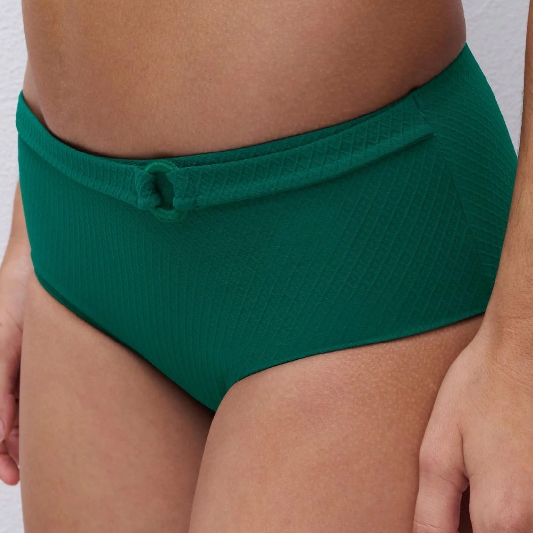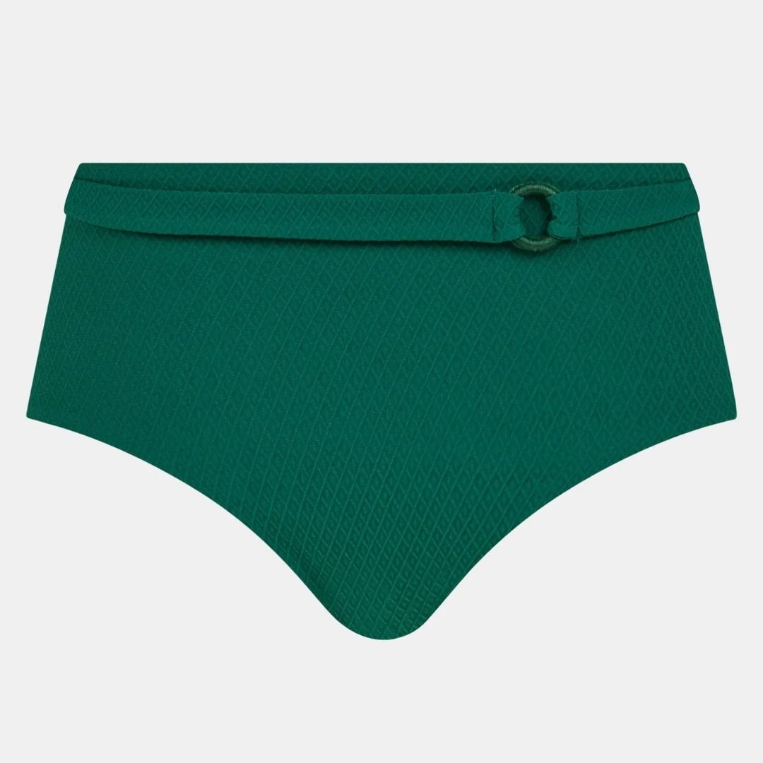 Subtilus struktūrinis audinys suteikia šioms bikini kelnaitėms elegantišką išvaizdą. Dėl žemesnių iškirpimų ties kojomis ir šiek tiek aukštesnio liemens šis modelis užtikrina maksimalų dengimą. Bikini kelnaitės užbaigtos dekoruotu juosmeniu su stilingu aksesuaru. Dabar šis modelis siūlomas ryškios uogų spalvos, leidžiančios sukurti išraiškingą įvaizdį. Derinkite su vienu iš „Navarino“ bikini viršutinių dalių, kad sukurtumėte vientisą ir stilingą komplektą.